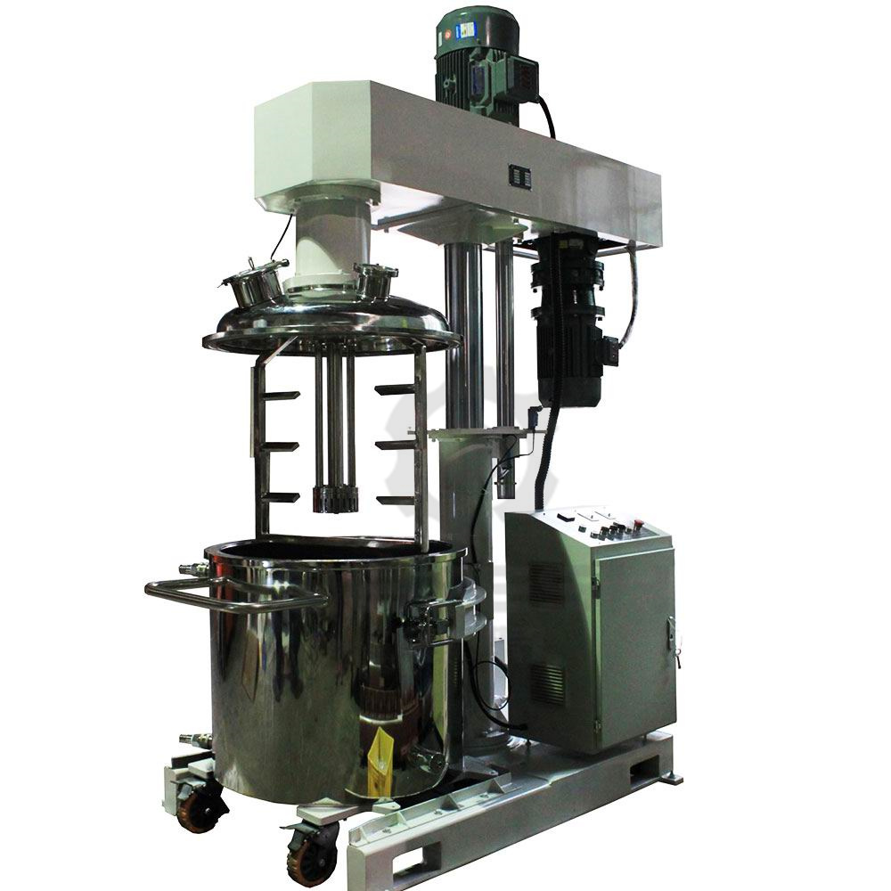 不易起泡,攪拌剪切力低,對于攪拌、分散/乳化可同時進行,可增加刮板,防止粘壁現象,使物料充分的混合分散,是產品短時間內達到工藝生產要求。用于固—固、固—液、液—液等混合,適用于化工、農藥、印染助劑、制藥、食品、涂料等行業。